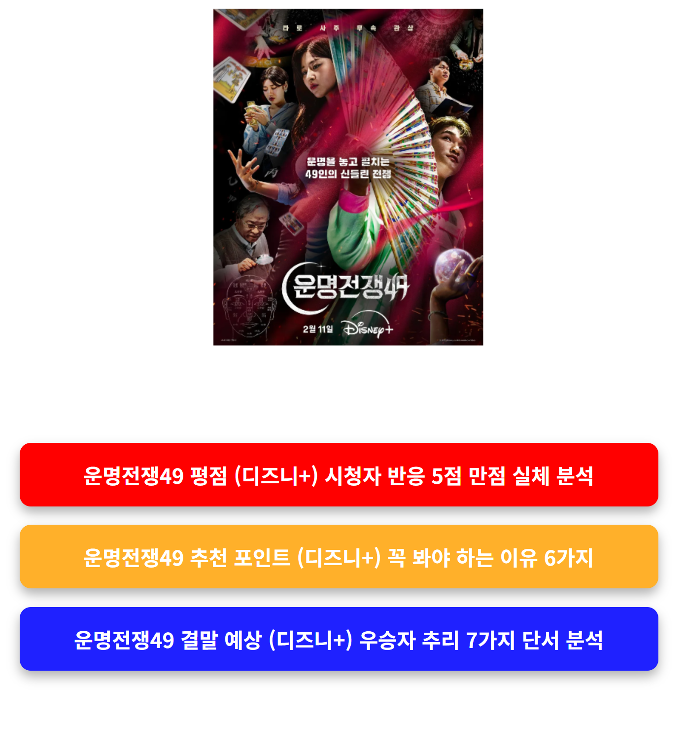 #운명전쟁49 #운명전쟁49후기 #디즈니플러스 #OTT추천 #예능리뷰 #서바이벌예능 #운명예능 #타로 #사주 #신점 #관상 #점술예능 #관전포인트 #1화후기 #예능추천 #화제작 #OTT리뷰 #예능평점 #몰입도 #출연진 #방송후기 #신작예능 #예능분석 #시청후기 #결말궁금 #콘텐츠추천 #OTT화제작 #디즈니예능 #운명풀이 #예능총평