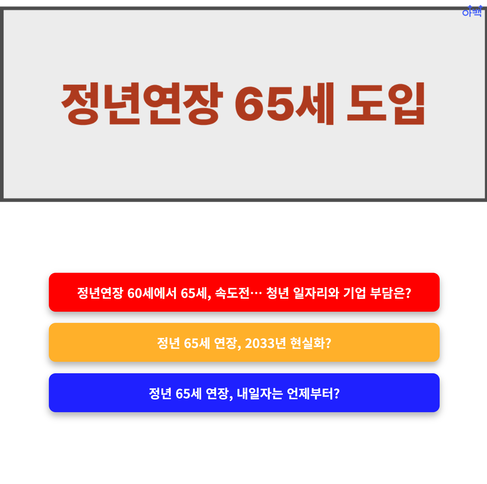 | 정년 연장 법제화 | 법적으로 정년을 65세로 연장 | 2026년 예상 |