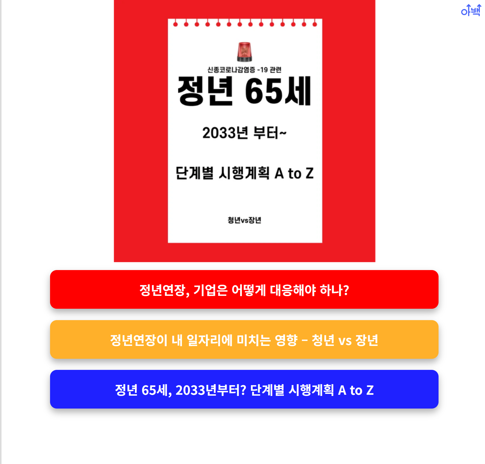 최근 언론에서는 ‘정년 65세 2033년 시행’이라는 보도가 잇따르고 있습니다.