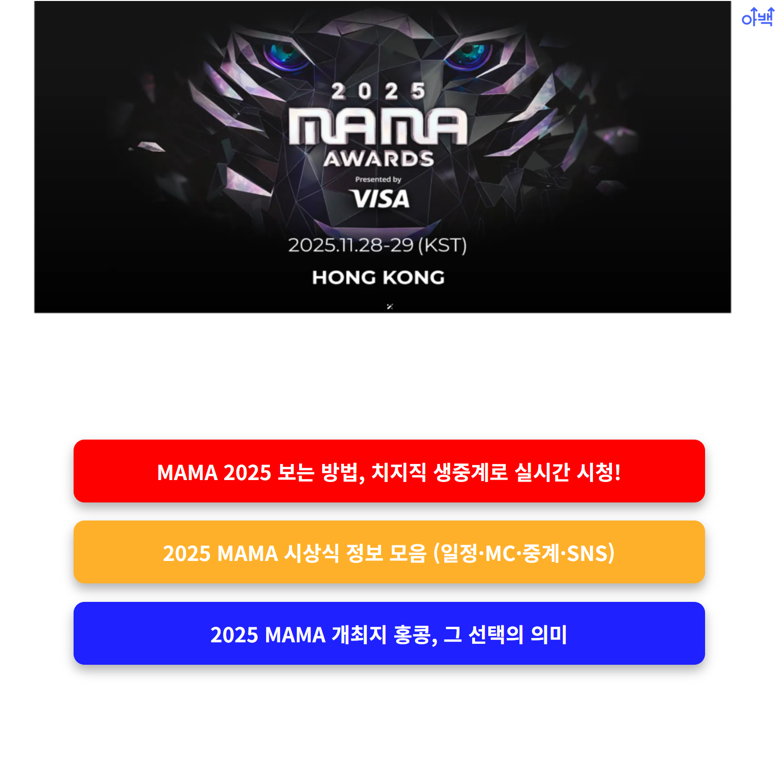 이번 글에서는 MAMA 2025의 **정확한 시청 방법**과 **생중계 플랫폼**인 치지직(CHZZK)을 중심으로